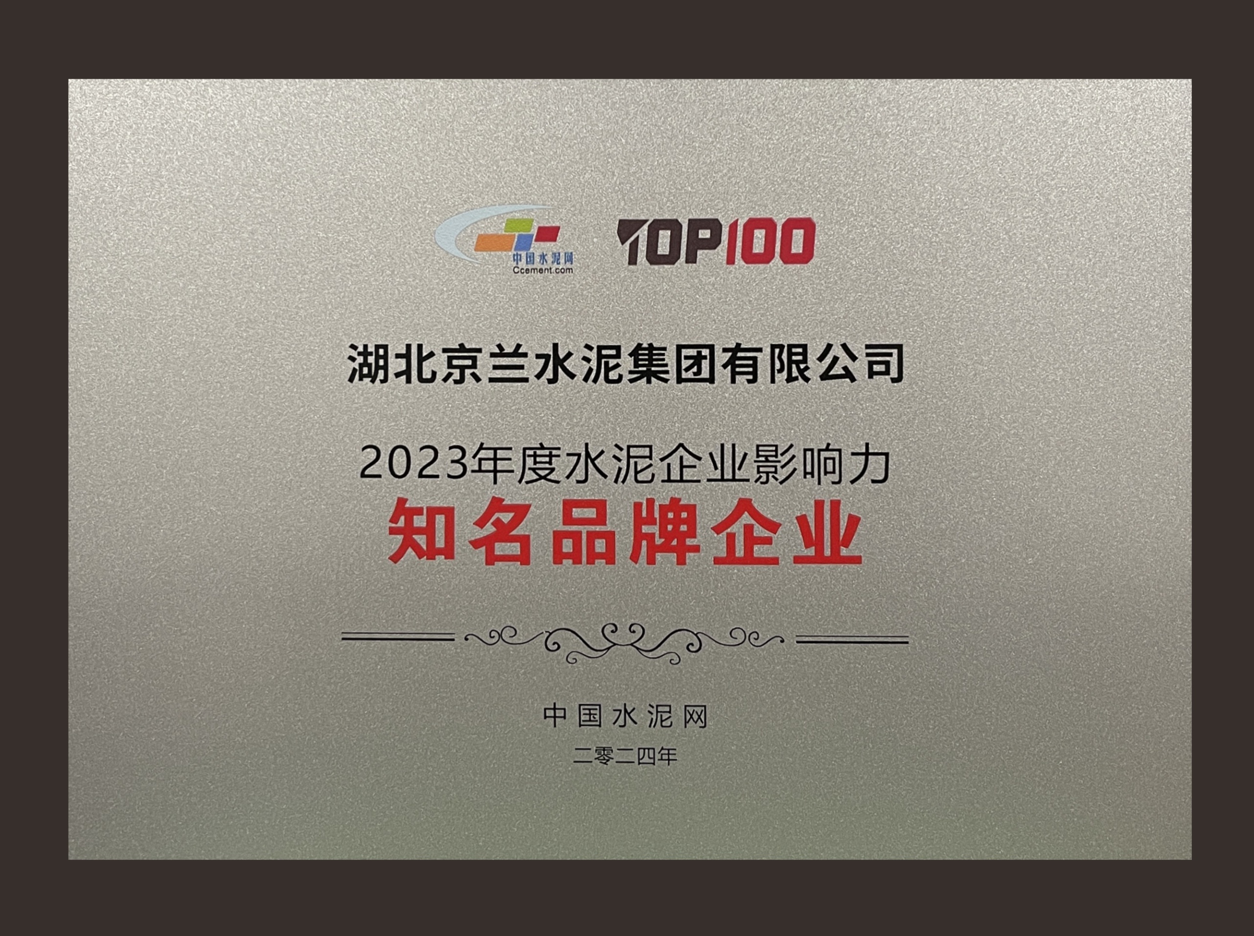 最后,會議舉行行業(yè)TOP100的頒獎典禮,湖北京蘭水泥集團有限公司喜獲“2023年度水泥企業(yè)影響力-水泥價格指數(shù)標桿樣本企業(yè)”及“2023年度水泥企業(yè)影響力-知名品牌企業(yè)”兩項大獎。